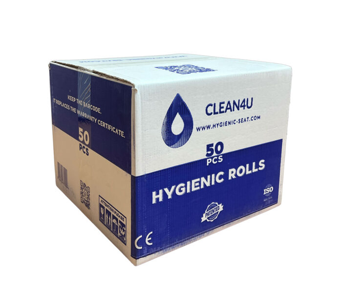 Clean4U hygiene roll is made of high-quality high-density polyethylene (HDPE). Since HDPE emits nearly no chemicals, it is the safest for the user’s health. One Clean4U roll will last 100 uses. One box contains 50 hygiene rolls.